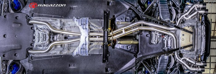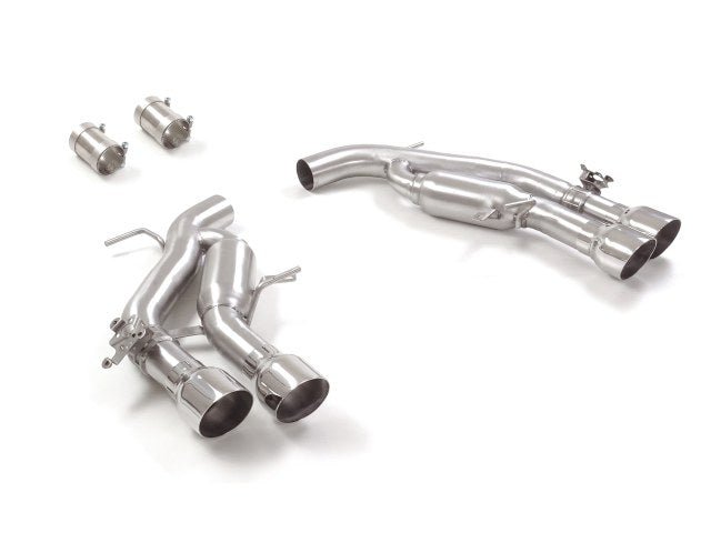 Ragazzon Roestvrijstalen middenpijp groep N + Roestvrijstalen achterdemper links/rechts groep N, elk met ronde Sport Line uitlaatpijp 2 x 102 mm verspringend.