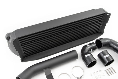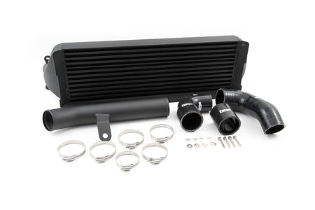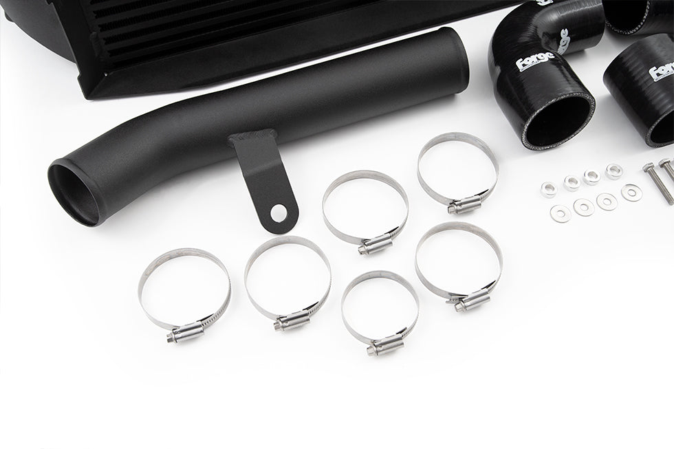 De diameter van de inlaat en uitlaat is vergroot tot 65 mm, waardoor het volume met 27% toeneemt ten opzichte van de standaard koeler voor een perfecte doorstroming. Het ontwikkelingsteam heeft ook een op maat gemaakte harde pijp toegevoegd, waardoor de diameter met 14 mm is vergroot tot 64 mm - ten opzichte van de standaard 50 mm. De boostpijp en intercooler worden geleverd in onze standaard zwarte poedercoating met textuur voor een maximale levensduur.