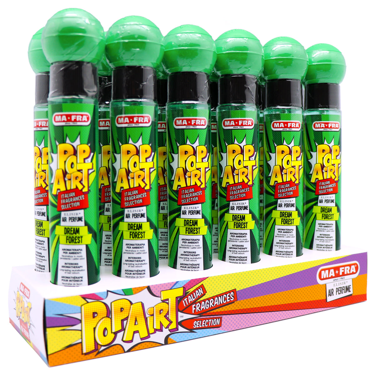 MAFRA Pop Art Auto parfum in de geur Dream Forest. Een geur die je geroken moet hebben! Transformeer je auto tot een heerlijk fris-natuur, schoon en lekker ruikende auto. Ontdek wat jouw favoriete geur is!