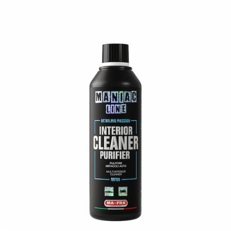 TRIPLE ACTION: Interior Cleaner Purifier van Maniac Line is een reiniger voor het interieur van de auto die een drievoudige reinigende, ontsmettende en reuk werende werking op het behandelde oppervlak mogelijk maakt;