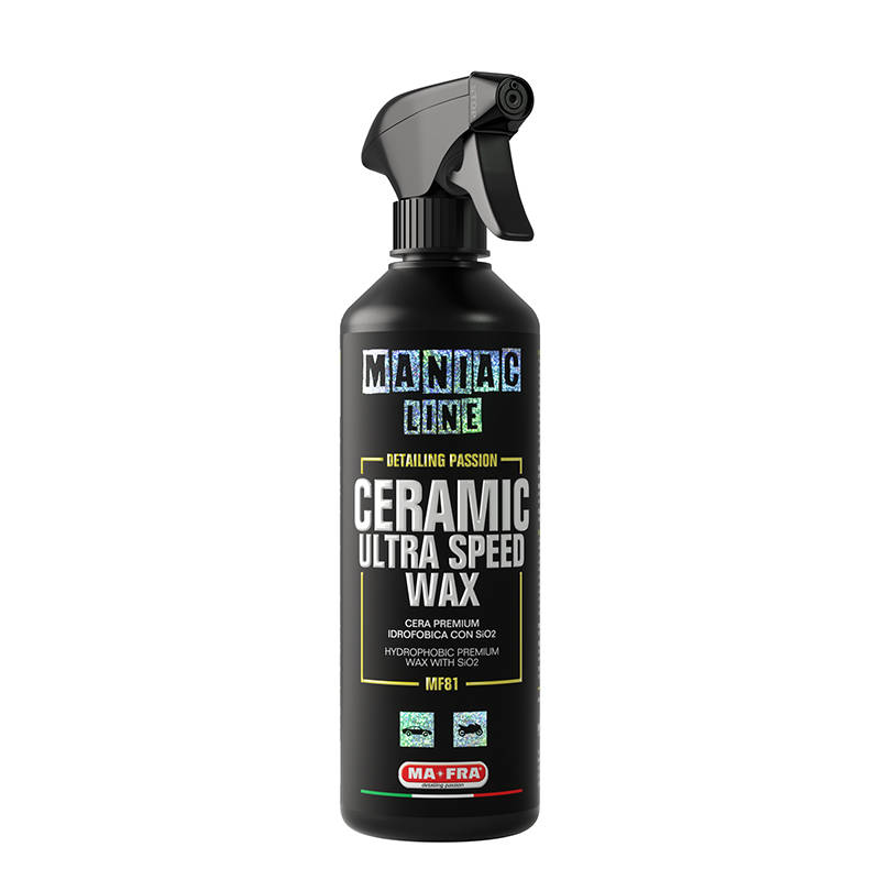 Ceramic Ultra Speed Wax is een sealende spraywax met SiO2 keramische polymeren die vuil, water en UV-stralen afstoten. Dankzij de formule hecht het zich perfect aan het oppervlak, waardoor een beschermend schild ontstaat dat tot 4 maanden na het aanbrengen hoge prestaties mogelijk maakt. Het product is snel en gemakkelijk aan te brengen en zorgt voor hoogglans en een diepere, vollere kleur met een wetlook. Het kan op elk oppervlak worden aangebracht en vormt een beschermende barrière die uitstekend bestand is tegen wassen.