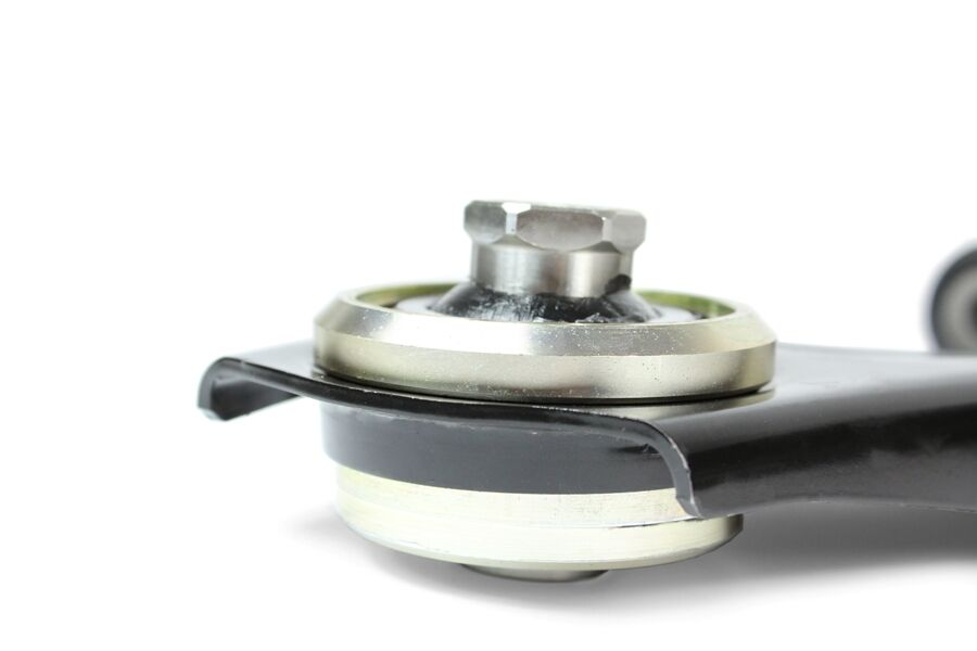 PFF76-902G Voorste Wishbone Rear Bush is ontworpen rond onze unieke, in de auto verstelbare Nylon/Polyurethaan kogelgewrichtcombinatie voor directer sturen en beter bochtenwerk en remmen. De offset boring maakt een casterafstelling van +/- 0,5-1,0° mogelijk met de bijgeleverde sleutel, om de fijnafstelling van het caster van links naar rechts te ondersteunen. De verticale stijfheid is 250% hoger dan bij standaard rubber.
