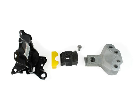 PFF76-923 Upper Gearbox Mount Insert is een betaalbaar en eenvoudig te monteren businzetstuk gemaakt van ons gele 70A Durometer trillingsabsorberende materiaal, dat de OEM-bevestiging van de bovenste versnellingsbak stijver maakt. Dit vermindert de verdraaiing van de motor tijdens het accelereren en schakelen, waardoor de pedalen directer aanvoelen, het wiel minder overhelt en je het vermogen net dat beetje sneller naar beneden krijgt. We raden aan om de PFF76-923 te monteren naast onze andere Yaris GR powertrain inserts (PFF76-920 & PFF76-925), omdat ze veel effectiever presteren als volledige set. Er is een kleine toename in NVH bij het verstijven van de aandrijflijnbevestigingen.